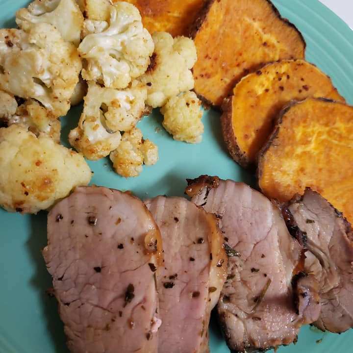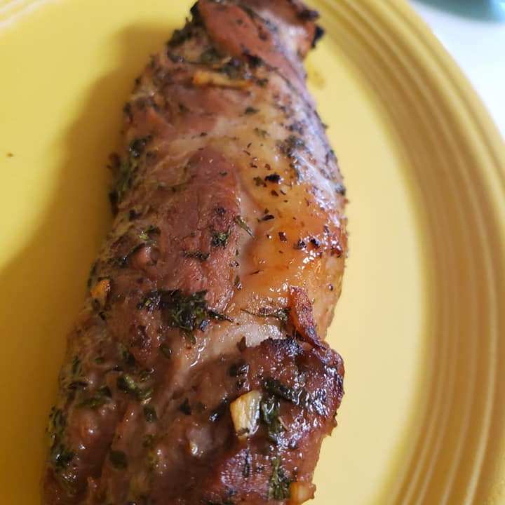 The pork was cooked to a perfect 145 degrees was moist and full of flavor since I marinated it overnight. Was such an easy cook too I seared it on the stove and finished in the oven just took 15 minutes to roast since it was a fairly smaller sixed pork loin. I suggest you try this and let me know what you think!!!! And if you make any changes also let me know! I love new ideas!