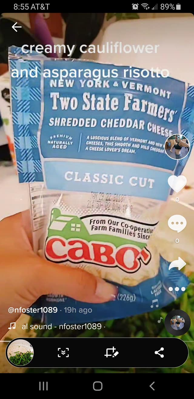 I did NOT get pictures while making it because to be honest I was trying my hand at tic tok and making my first voiceover video LOL BUT I did managed a few screenshots! I sautéed garlic and onions in butter and a little bit of oil until the garlic was fragrant and onions soft. I microwaved the cauliflower in the bad of course for 7 minutes then I did drain some using a colander and threw in with the onions. I then added some broth, heavy cream, cream cheese and shredded cheddar! Cabot cheese makes this amazing two blend cheddar I literally use it for everything.