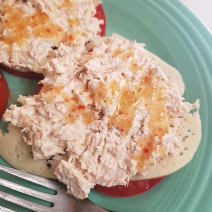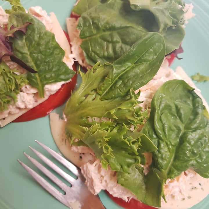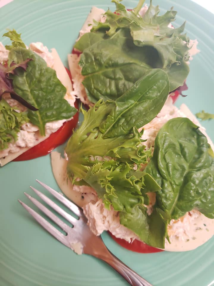 So I fasted today until lunch and decided to have the leftover Jersey Tomato with some swiss and tuna! It was so easy and it was so filling I also sometimes add a boiled egg to my tuna but this time I didn’t. A good drizzle of Italian salad dressing always does the trick too!