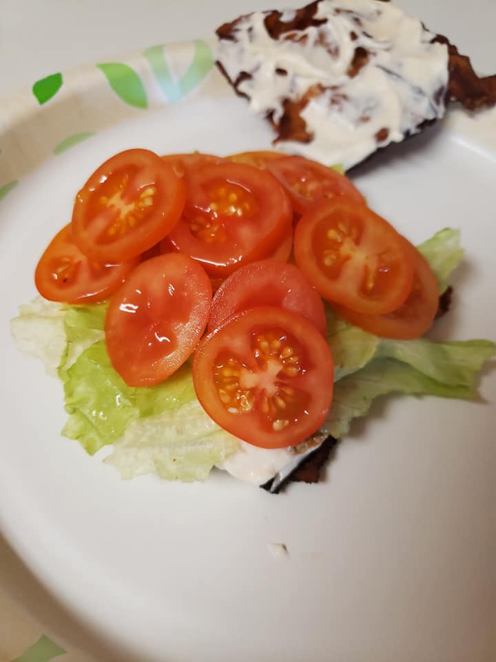 One of my favorite sammies is a BLT with a good jersey tomato! It is very easy to do as well as make and works absolutely amazingly. I always cook bacon in the oven on a foil lined cookie sheet and place the bacon into a COLD oven! This brings the bacon up to temp slowly and cooks it more evenly. I do this for the weave too but I tend to bake it a little longer because I love crispy bacon! I will not eat or want any chewy bacon.