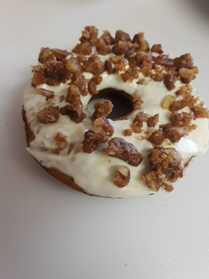 I made these using a typical pumpkin mold and they were so good! I then said “Self lets try to make munchkin type doughnuts!!” and low and behold I DID! I used a small sphere mold and made frosting too! one with chocolate and one is a vanilla cream cheese frosting!