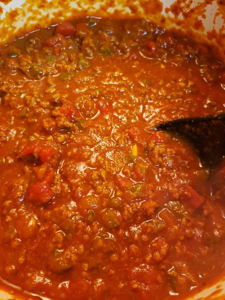 I do keep it simple and use ground beef I prefer 80/20, garlic, peppers, a can of Ro Tel and a can of sauce! My favorite sauce to cook with is Furmano’s it has just 3net carbs per 1/4 cup so in recipes such as chili it works great!
