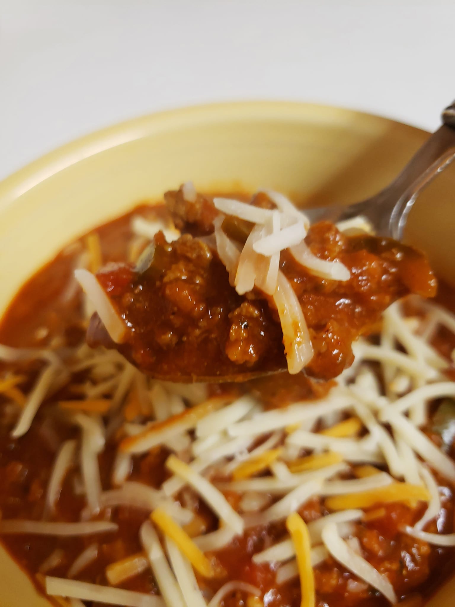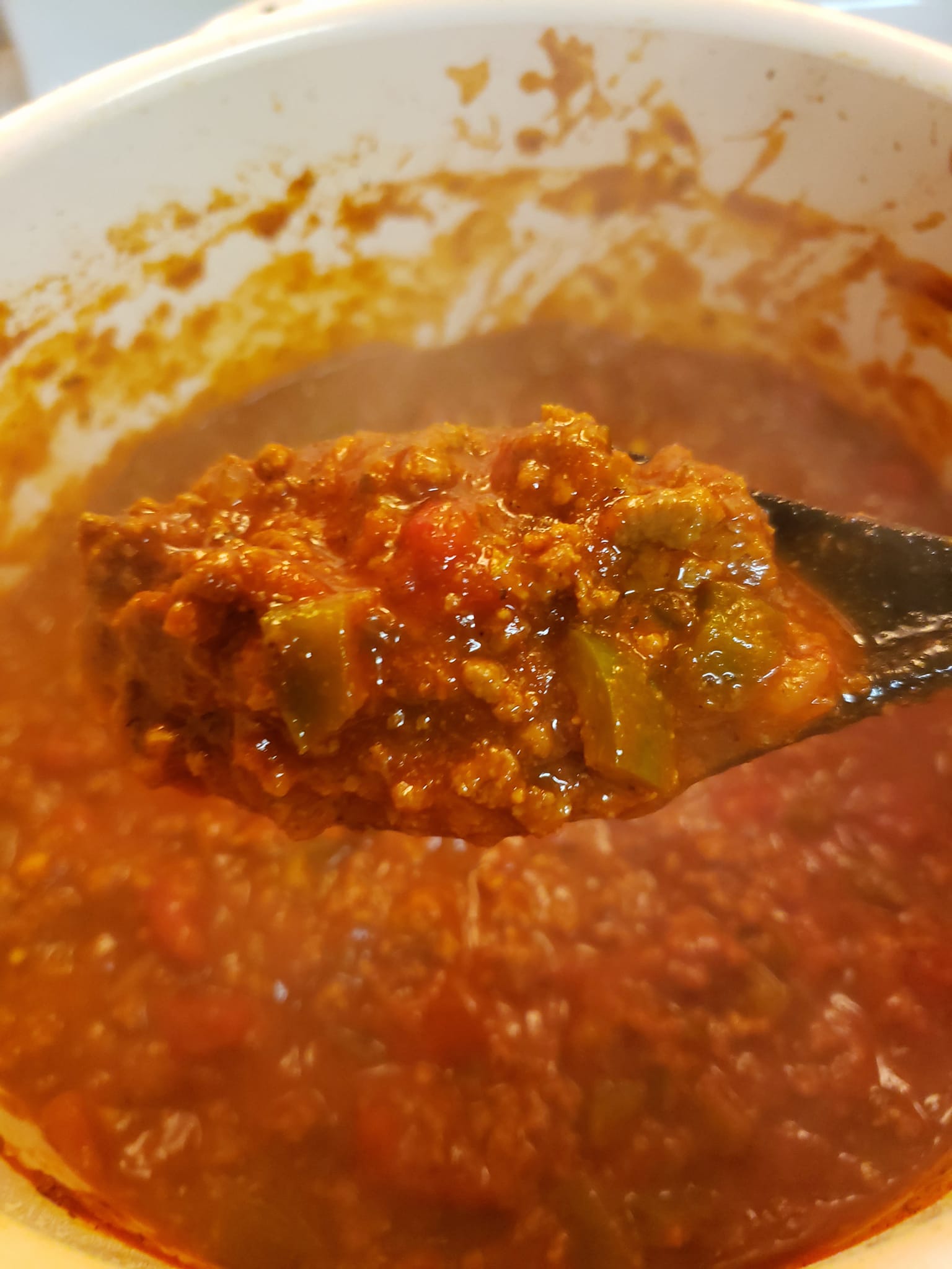 Yesterday I woke with a hankering for Chili! So I made my bean-less chili! You can spice this up any way you would like. You can also add beans if they fit in with your life style. Sometimes I also add chunks of steak! Today it was a last minute thing so I did NOT have steak chunks thawed or ready for the chili.