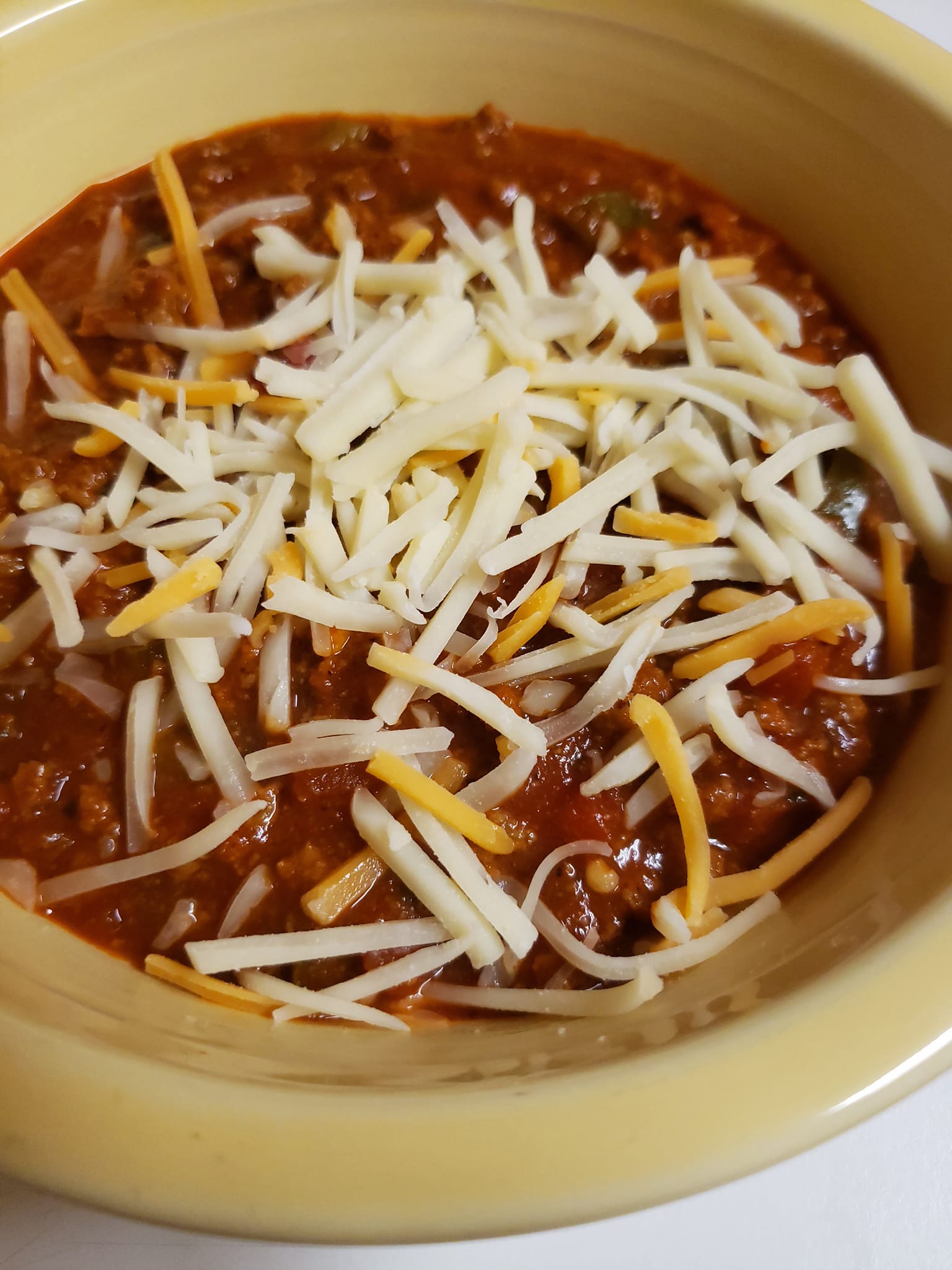Once it is good and ready spoon into a bowl and top with cheddar or mozzarella cheese and sour cream! OR you can even top a sweet potato with it!! OR HOTDOGS!!! come on ya’ll think outside the box!